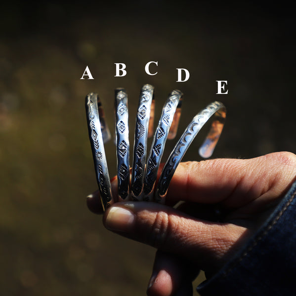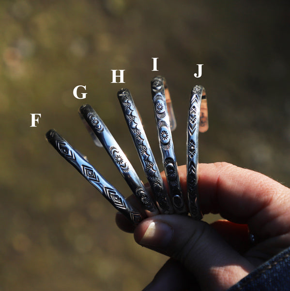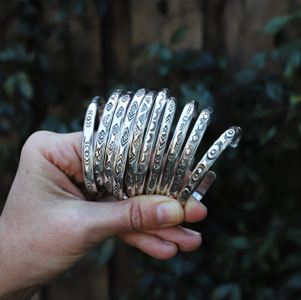 This hand-stamped STERLING SILVER stacking cuff is crafted from recycled sterling silver, stamped, forged and finished by hand. No two are exactly alike—because neither are you.