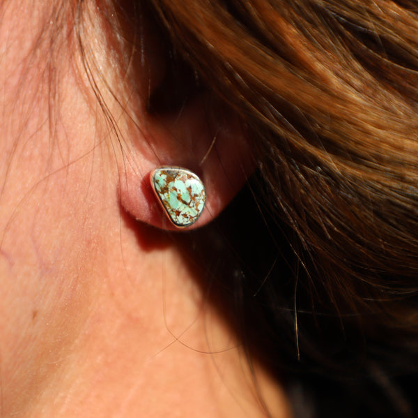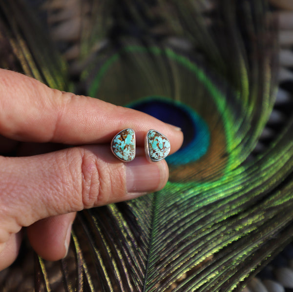 These pale blue Dry Creek Turquoise studs are all soft sky tones with warm, earthy matrix—subtle, calming, and unexpectedly good. Featuring DRY CREEK TURQUOISE, bezel-set in FINE + RECYCLED STERLING SILVER, handcrafted by me with fire, patience, and an unreasonable amount of attention to tiny details.