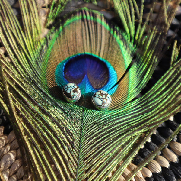 These slim Kingman Turquoise studs bring just enough attitude without raising their voice. Ethically sourced KINGMAN TURQUOISE—all sky-blue with those perfectly imperfect natural markings—bezel-set in FINE + RECYCLED STERLING SILVER, handcrafted by me with patience, fire, and a truly unreasonable number of tiny tools.
